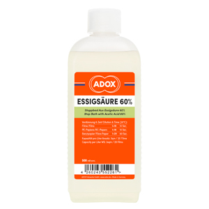 - Adox Essigsaure is a universal stop bath for black and white films and paper.