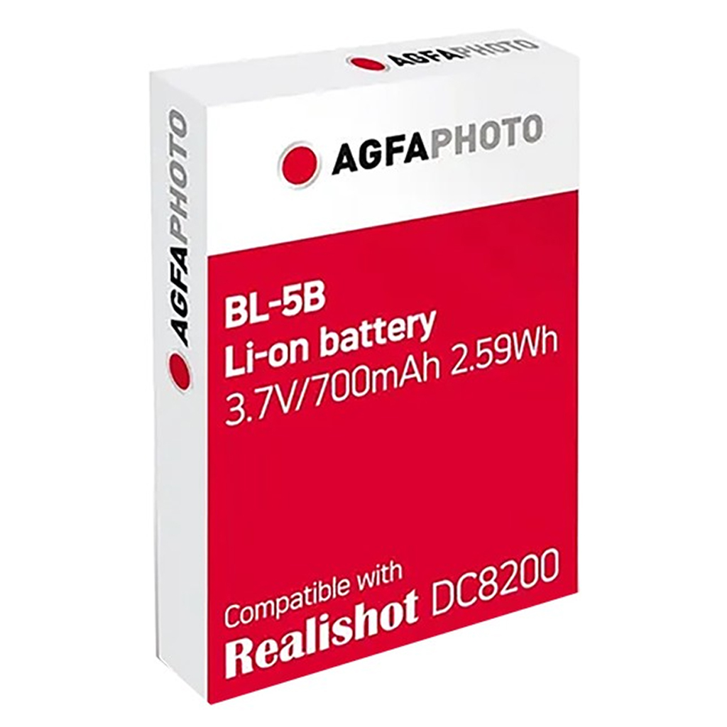 Spare replacement genuine AgfaPhoto BL-5B lithium-ion rechargeable battery. Suitable for use with the AgfaPhoto Realishot DC8200 digital camera. 3.7v 700mAh 2.59Wh capacity. Lithium ion technology so there is no memory effect.