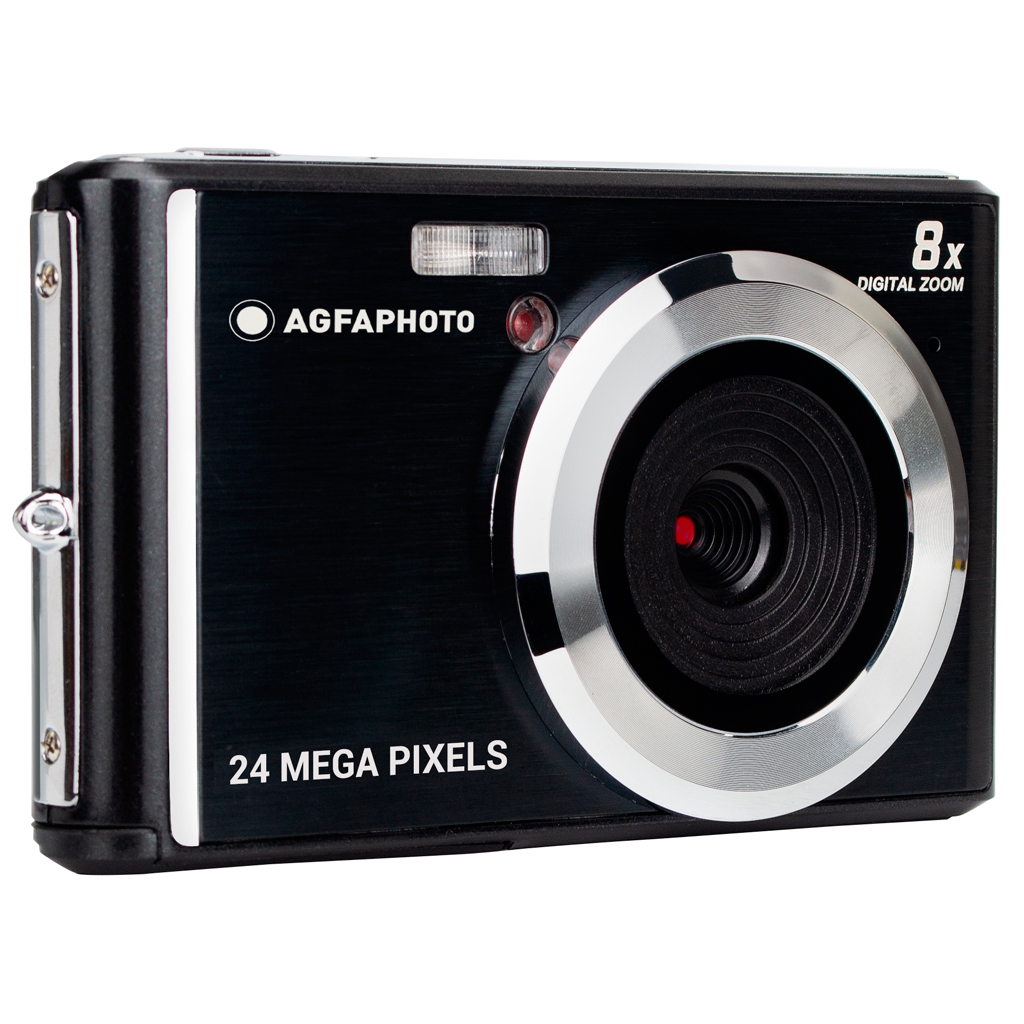 With its compact design, the AgfaPhoto Realishot DC5500 compact digital camera is ultra easy to use. Its 5MP CMOS sensor shoots interpolated photos up to 24MP and HD video. The 2.4" LCD screen allows you to frame and view with ease. It is equipped with 8x digital zoom and photos are stored on SD card (not included), up to 32GB. Powered by a lithium battery, it also features built in flash and a self timer function (2s, 5s or 10s).