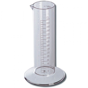 AP Photo graduated cylinders are made from transparent plastic glass, with precise measurements in cubic centimetres, British and American ounces. There is an ample base to provide excellent stability. Heat resistant up to temperatures of 80 degrees C. This graduate has a 300ml / 300cc (11 fl oz) capacity.
