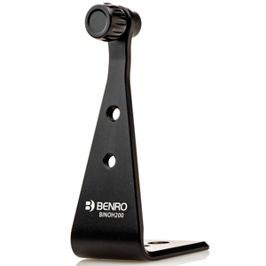 The Benro BINOH200 is an Arca-compatible binocular bracket designed to fit in Arca-compatible heads. It can also be attached to heads using either the standard 1/4 inch or 3/8 inch threads on the base of the bracket . In addition there are two 1/4 inch threaded holes on the stem of the bracket which can be used to store protective caps from your binoculars.