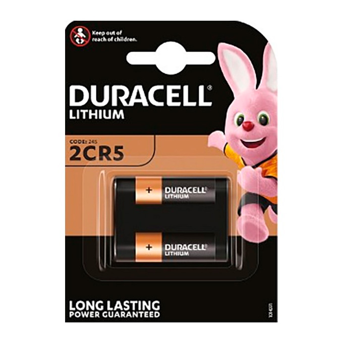 Duracell 2CR5 (245) lithium type battery as used in many 35mm slr cameras. 6v. Non rechargeable. Designed for power hungry products such as cameras and flashguns. Lithium technology for a longer life. 2CR5 batteries are also know as 245, 5032LC, DL245, DL345, EL2CR5, KL2CR5, EL2CR5BP, RL2CR5 and 2CR-5.