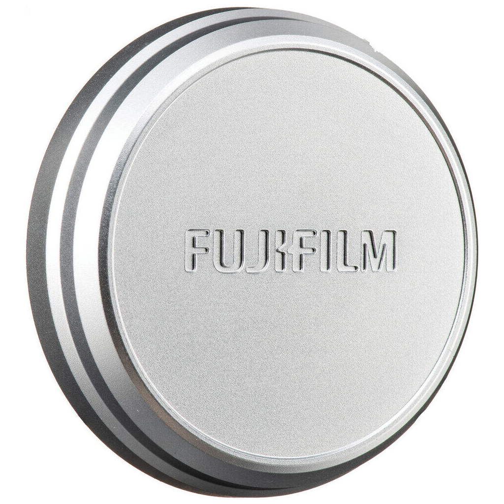 Genuine Fujifilm spare replacement lens cap which is suitable for the Fuji Finepix X100V and X100VI digital camera models. Silver finish. Helps to protect your cameras lens from dust, fingerprints, knocks and scratches when your camera is not in use.