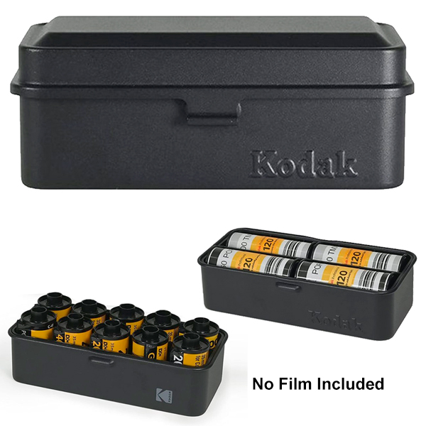 - This iconic Kodak metal film case is made from steel and aluminium and will accommodate 10 rolls of 35mm film OR 8 rolls of 120 film.