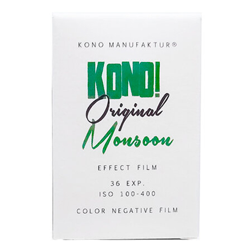 KONO! Original Monsoon produces special tones for refreshing images. 36 exposures. Upgraded film stock. ISO 100-400, DX coded. The higher the ISO, the stronger the effect. The darker the background, the stronger the effect. Can be processed as normal in a mini-lab. Price does not include processing.