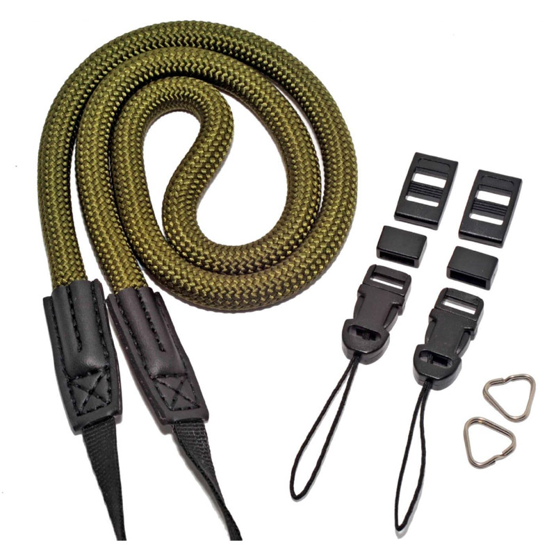 By adding a pair of quick release connectors that can be placed on the ends of any standard/OEM camera strap, it gives this climbing rope camera strap super-fast, ultra secure quick-connection capability. Place the low-profile anchors on the strap loops of your camera, binoculars, or other devices.