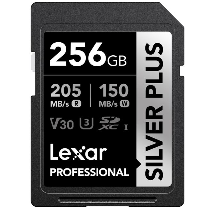 - Lexar Silver Plus series SDXC memory card with a 256GB capacity.