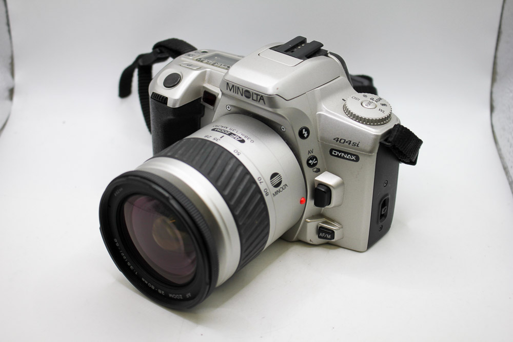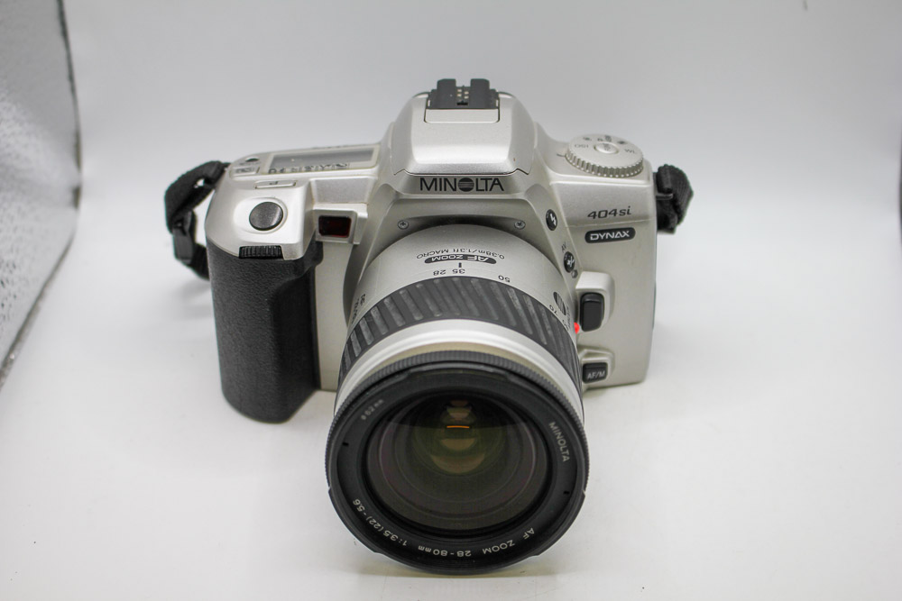 - Used Minolta Dynax 404si with a 28-80mm lens, both in good condition. (slight yellowing of pentaprism- does not affect pictures)