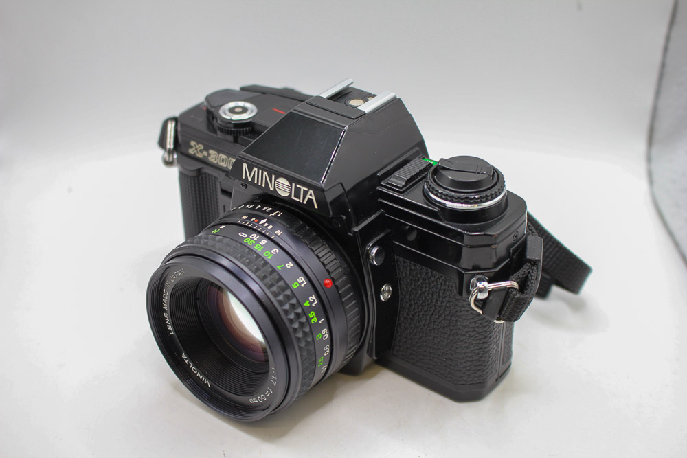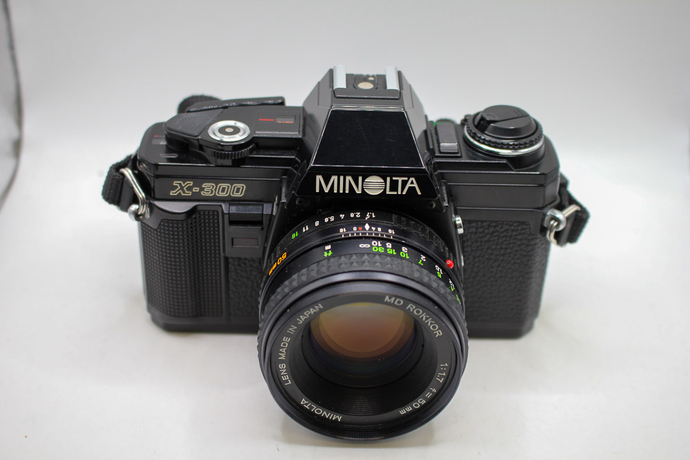 • Used Minolta X-300 35mm SLR camera complete with the Rokkor 50mm f1.7 standard prime lens.