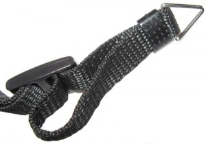 Plain black narrow weave camera strap. 15mm width. Total length approx 100cm. Standard metal ring fittings.