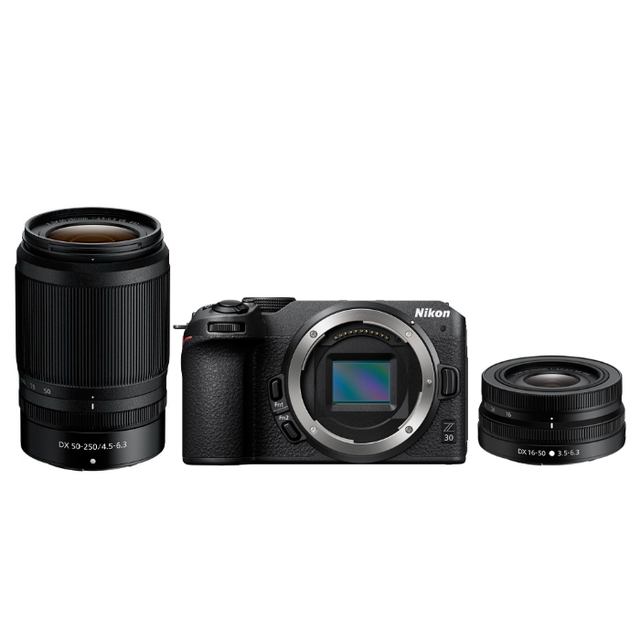 Nikon Z 30 with Nikkor 16-50mm & 50-250mm twin lens kit box contents: