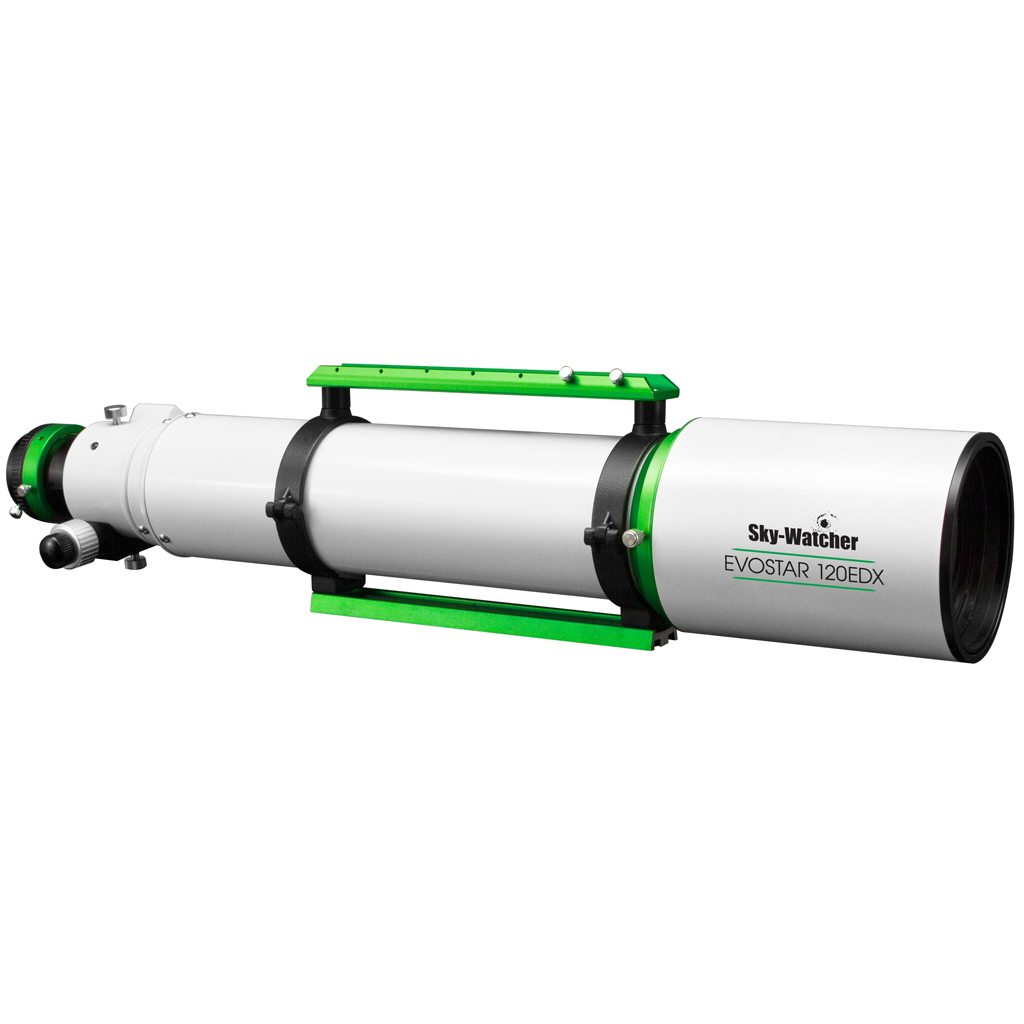 The Evostar-120ED apochromatic doublet refractor has received some exciting upgrades. We are pleased to introduce the new Sky-Watcher EVOSTAR 120EDX model, which is the result of several very useful mechanical improvements. Presented in its stunning new white and green livery, the EVOSTAR-120EDX is a superb instrument for both imaging and visual use, with the necessary accessories.
