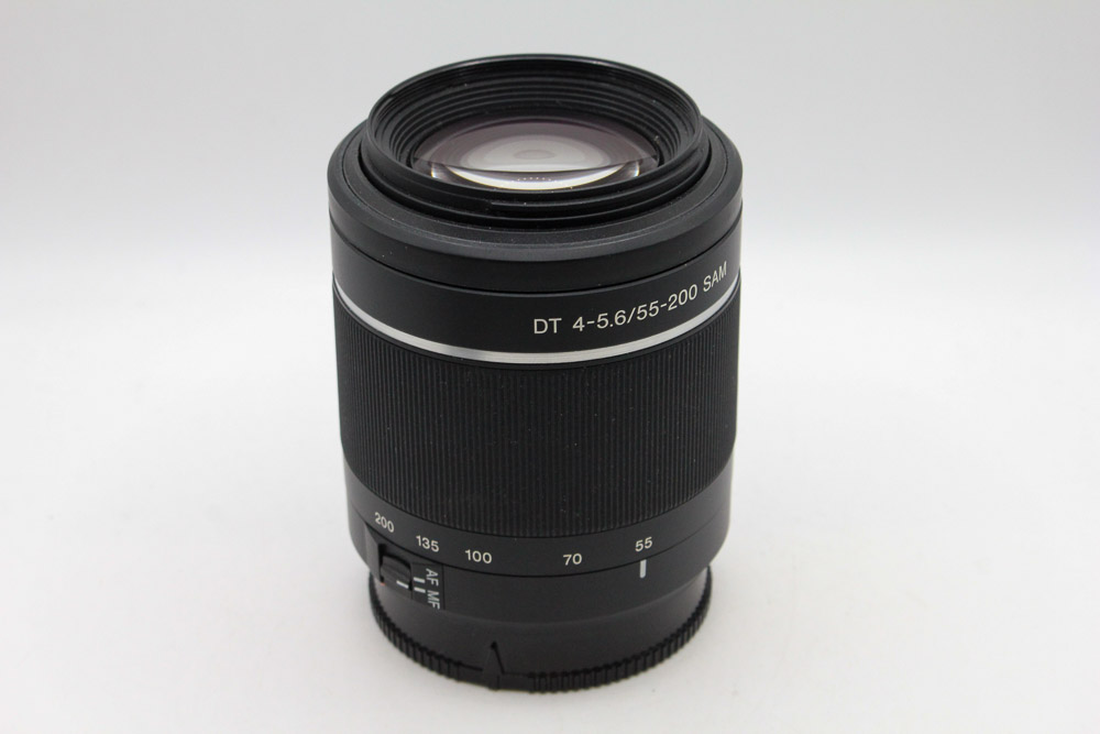 - Used Sony 55-200mm f4-5.6 DT SAM autofocus mid range telephoto zoom lens.