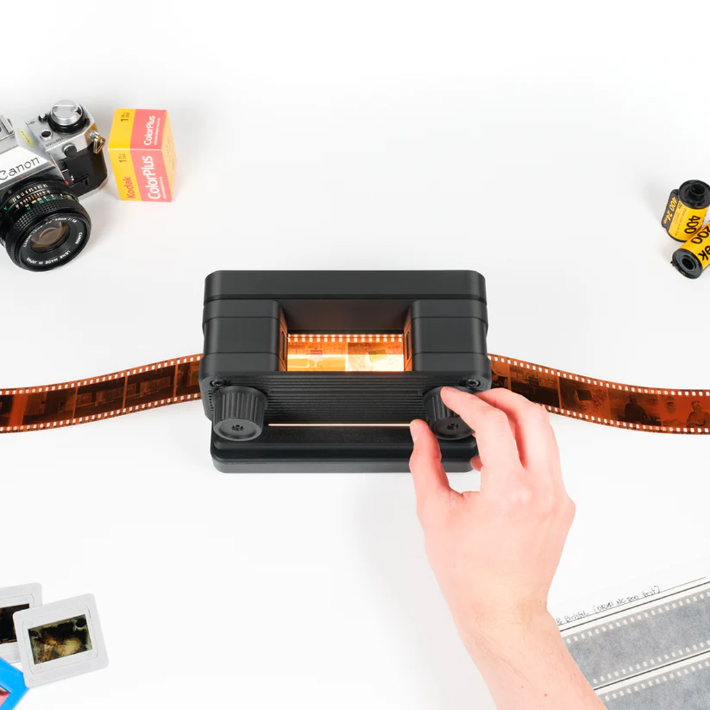 The toneCarrier 35 mm negative film holder is engineered to make camera scanning your 35 mm film quick and painless. You can use your digital camera (DSLR or mirrorless) to make high quality scans from any length of 35 mm negative or slide film. A unique dual roller system grabs film from both sides, ensuring even tension and great consistent results. Includes 35mm film carrier and a full frame mask. Half frame and x-pan masks available individually or as a complete kit.